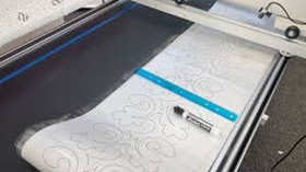 - Secure the paper pantograph pattern under the plastic sheet covering the back table of your longarm frame.