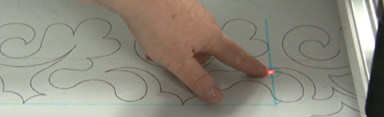 Then the quilter follows the line design of the pattern with a laser light or stylus from the back of the machine. The result is an allover (or edge-to-edge) design stitched across the quilt.