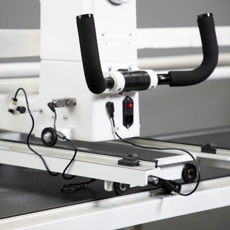 Your machine needs to be fitted with a ‘quilt from the back’ kit. This adds the handlebars on the back of your machine head. They allow you to guide your machine as you follow the pattern design. The kit also provides the laser light and any cables needed.